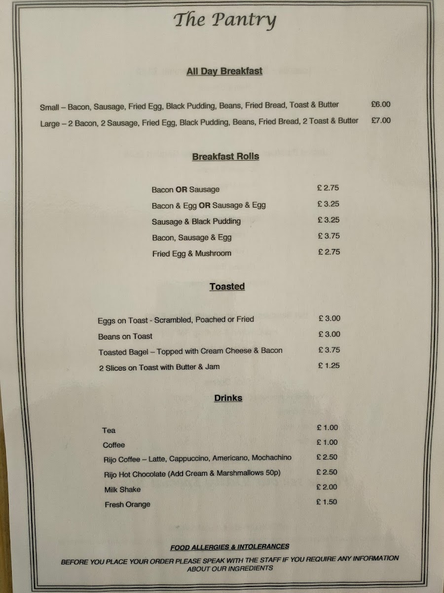 The Pantry specializes in a range of breakfast dishes that are guaranteed to satisfy even the hungriest of diners. Start your day off right with their All Day Breakfast, featuring 1 bacon, 1 sausage, an egg, fried bread, black pudding, beans, and toast for just £6.00. Feeling particularly ravenous? Opt for the All Day Big Breakfast at £7.00, which doubles down with 2 bacon, 2 sausages, and even more of the classics!