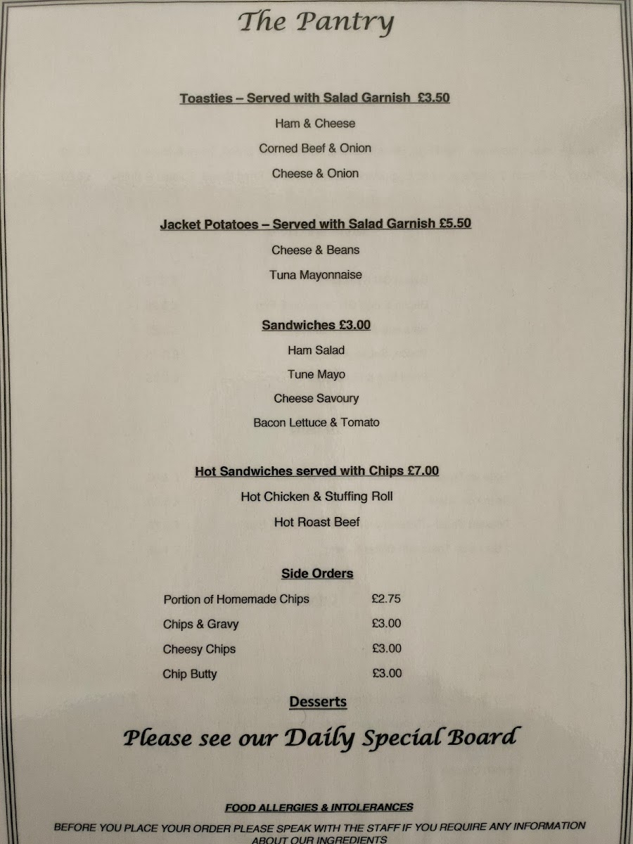 The Pantry Menu